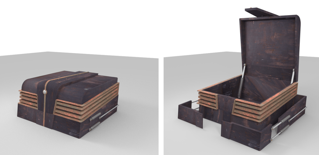 The first step in the project was the creation of a case with an Art Deco/Streamline Moderne style to showcase a stereoscopic camera belonging to a female engineer named Natasha Sidorova. The case was designed using 3D modelling software and included intricate details such as geometric patterns and sleek, curved edges. The camera was created with a combination of vintage and modern elements to highlight the progression of technology over time.