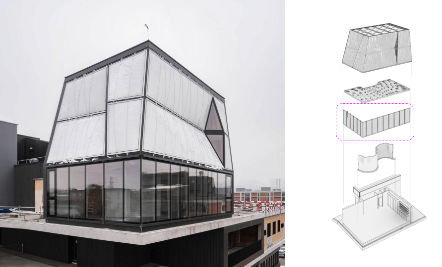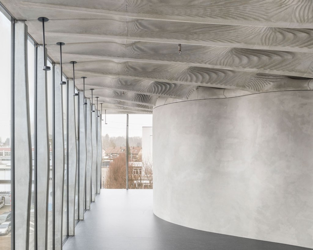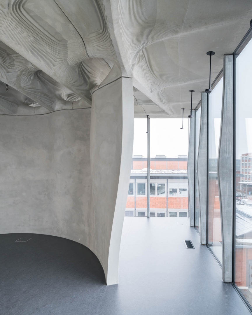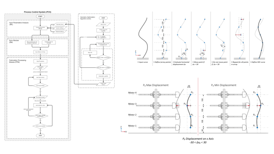 Smart Dynamic Casting (link) is a robotic fabricaiton process originally developed by Dr. Ena Lloret-Fritschi. This method utilizes the slipforming construction technique for the fabrication of bespoke concrete elements by implementing an adaptive formwork system and a sophisticated approach to the use of admixtures in concrete processing. The potential of SDC in producing 1:1 architectural structures is demonstrated in its first architectural application for the production of interior façade mullions of the DFAB HOUSE by the NCCR Digital Fabrication. This project that highlights the potential of digital and robotic fabrication technologies and it links it to the exploration of new possibilities in architectures.