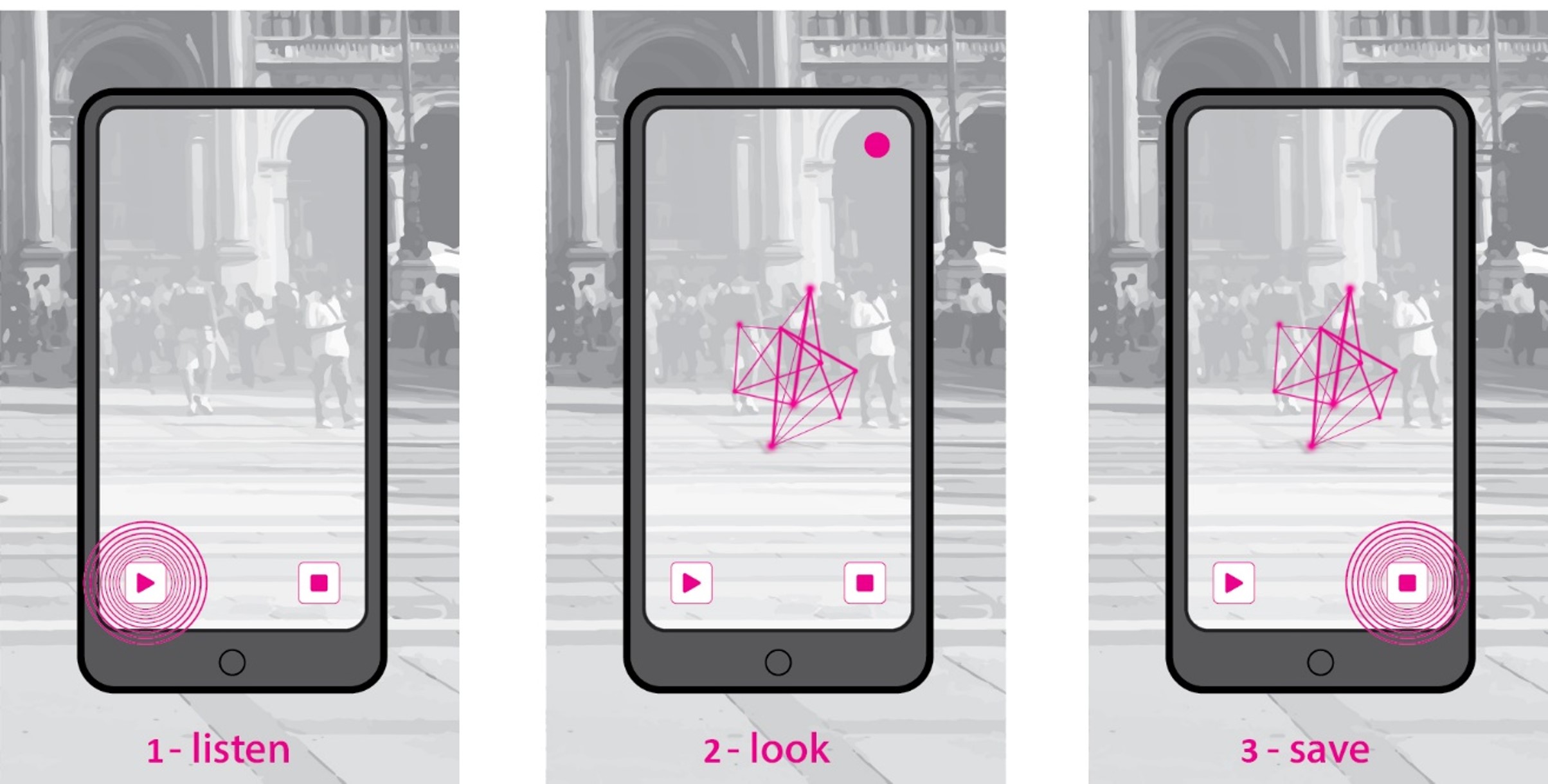 The project makes use of a customised mobile device app that captures the surrounding sound and uses augmented reality (AR) technology to represent the noises visually. The app allows users to access noise parameters such as frequency and amplitude and to interact with the AR simulation. This active participation allows users to customise the experience to match their preferences and provides a unique and engaging way to experience the urban environment.